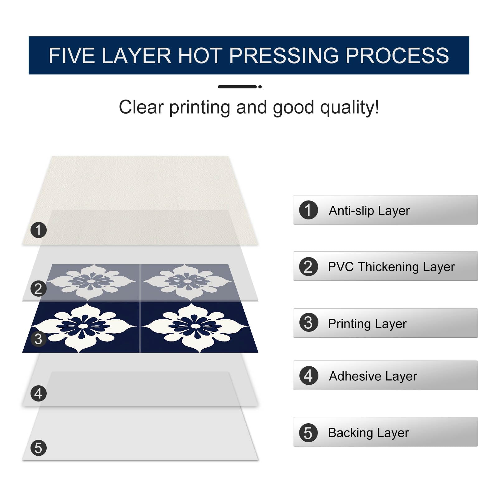 - Bold Navy Floral Print: These peel and stick vinyl tiles feature a classic white floral motif over deep navy—perfect for adding strong contrast and traditional character to kitchens, bathrooms, and enclosed balconies.