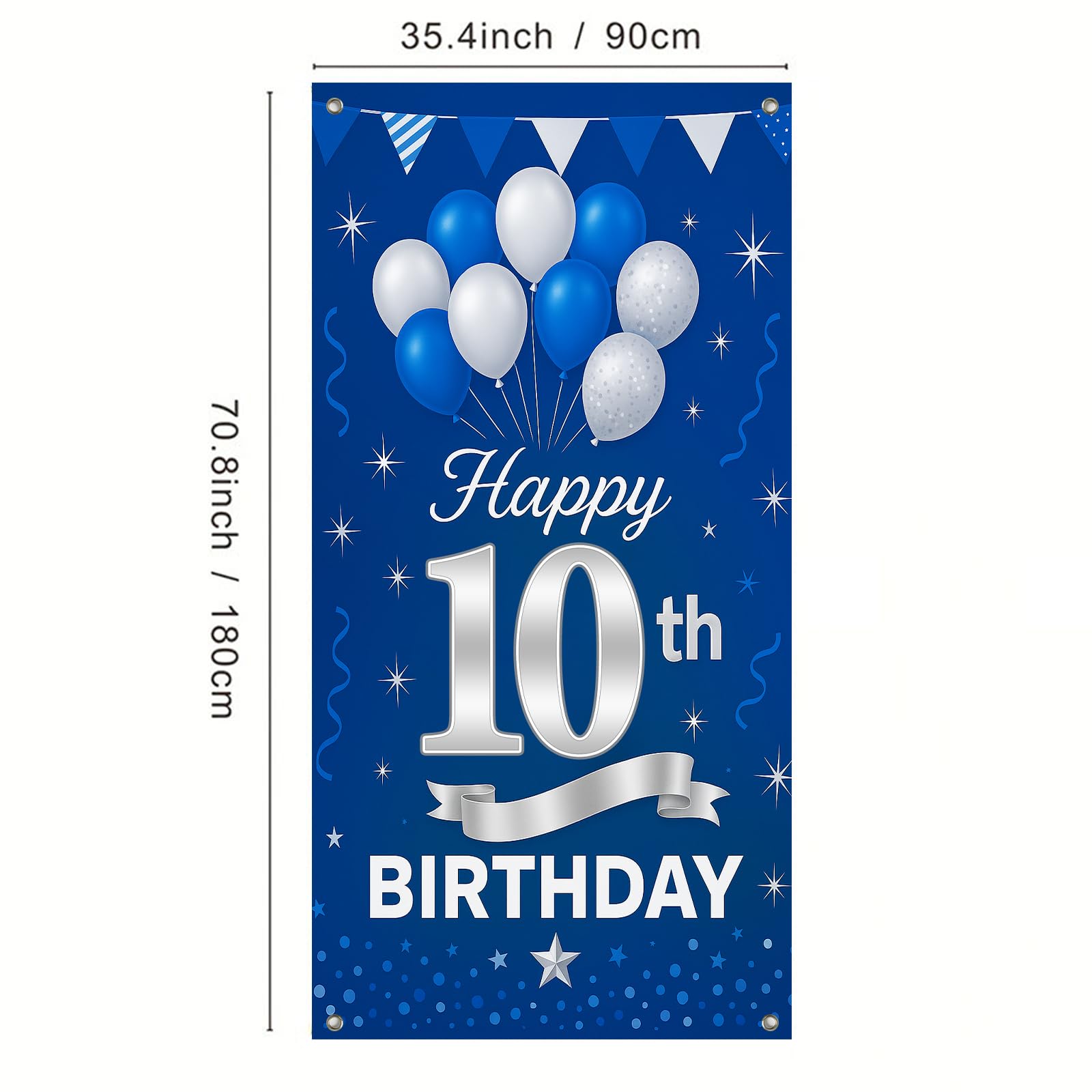 IVN 10th Birthday Door Cover 71x35 Inch Blue Silver Banner with Balloons Stars and Streamers for Party Decorations Backdrop Sign for Teens Boys Girls Photo Booth Prop Wall Decor—