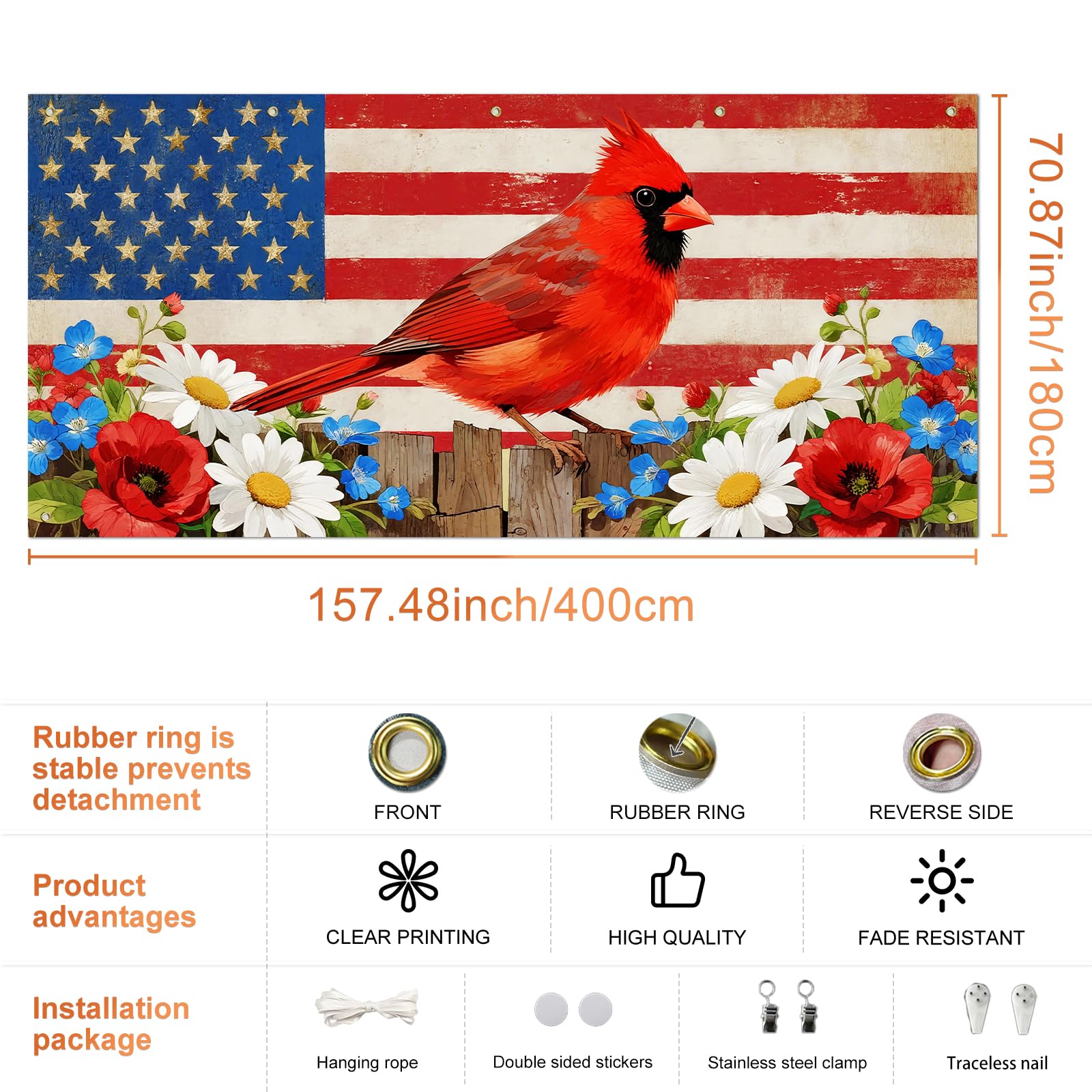 - Bold Seasonal Impact: At 13x6ft, this 4th of July garage door banner stands out as a bold 4th of July garage banner and 4th july banner, transforming your home’s exterior into eye-catching july 4th garage door decorations that blend American pride with nature-inspired charm for spring and summer.