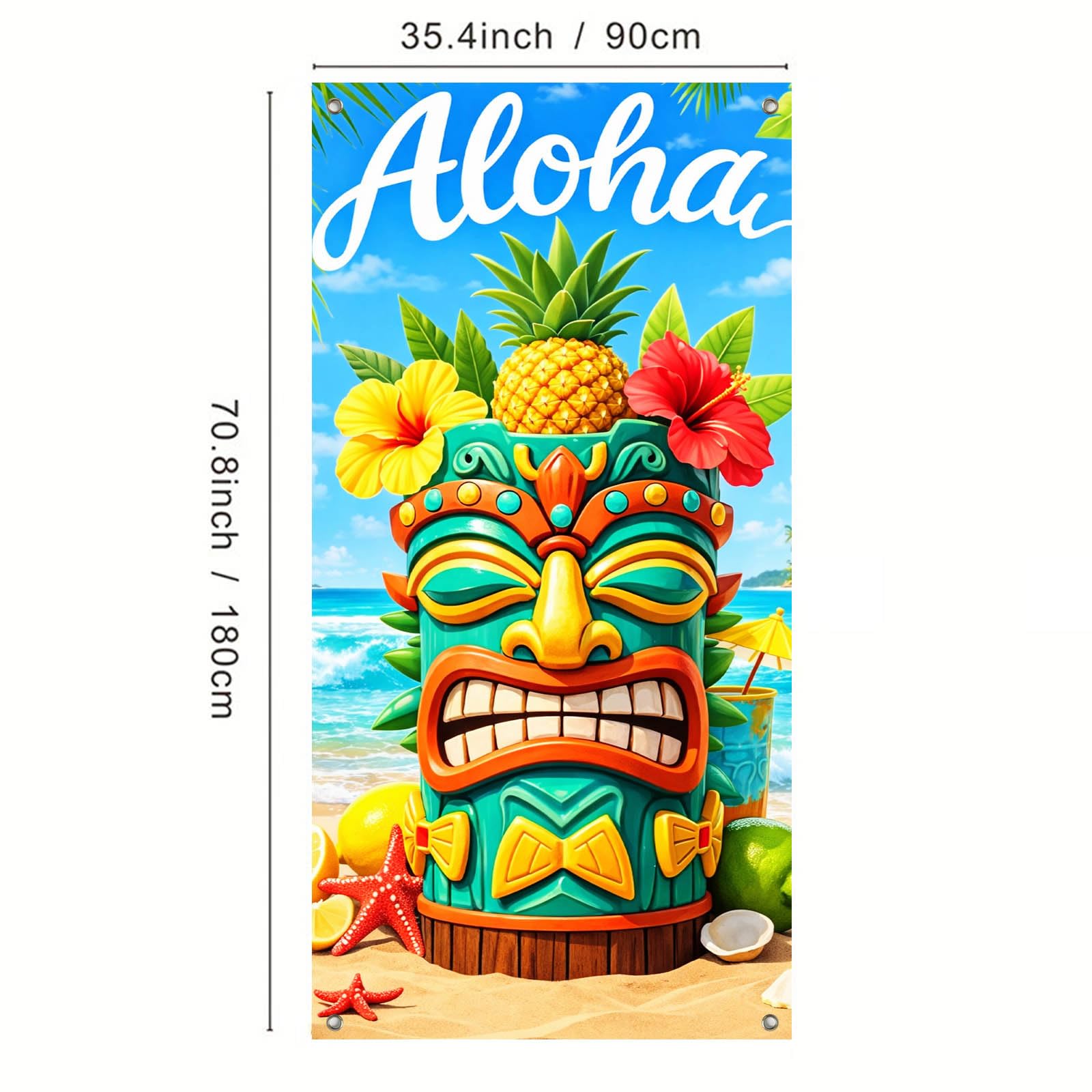 IVN Aloha Beach Tiki Door Cover Decoration 71 x 35 in Luau Party Tropical Hawaiian Summer Door Banner Photo Backdrop Poster Indoor Outdoor for Front Door Summer Beach Party Decorations