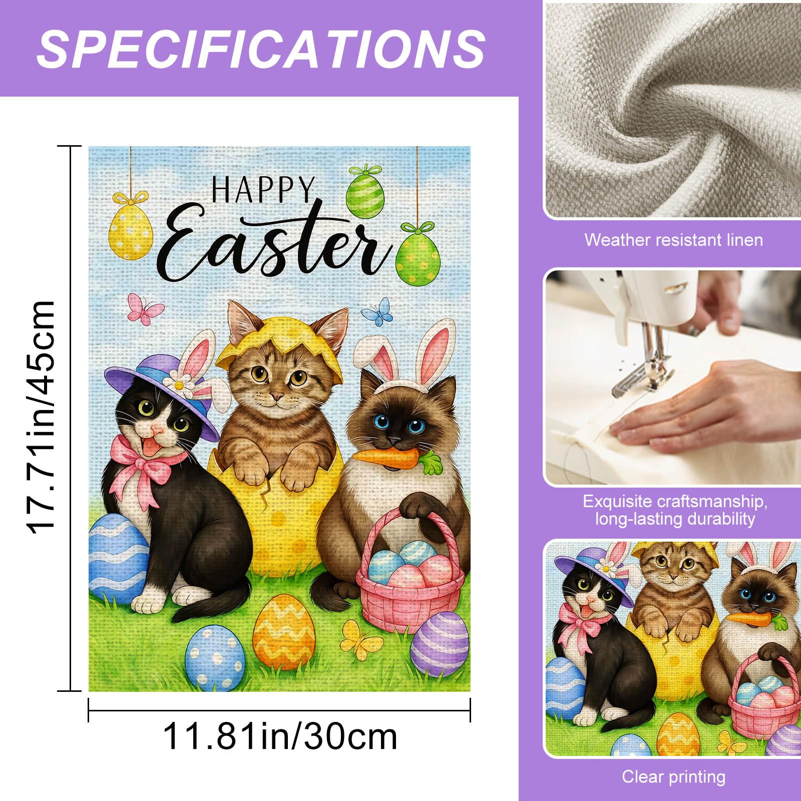 - Happy Easter Burlap Garden Flag for Front Yard: Celebrate the season with this happy easter burlap garden flag featuring cute cats, bunny ears, and colorful eggs—an adorable yard flag for porch entry or garden path.