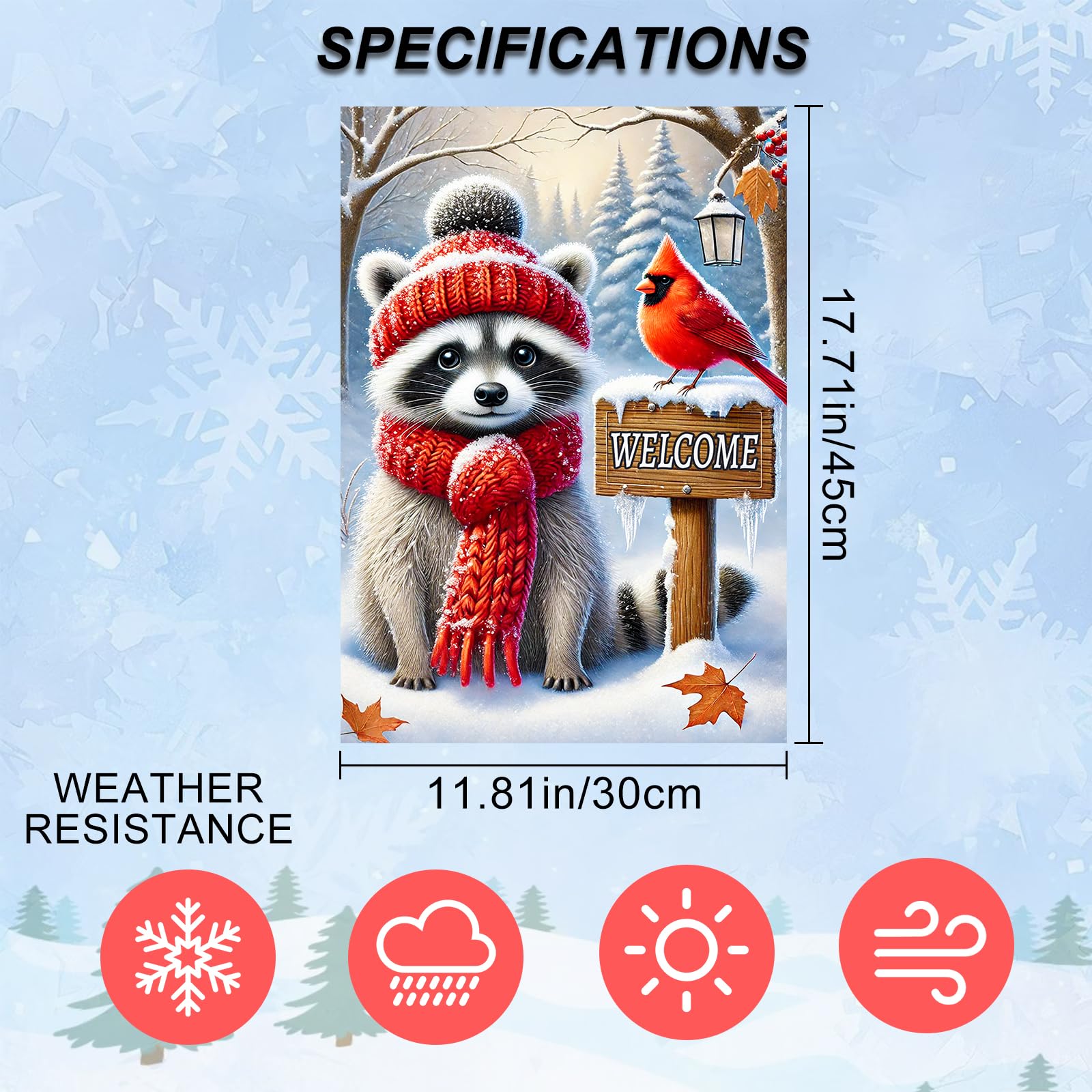 IVN Christmas Garden Flag 12x18 Inch Double Sided Fall Winter Hello Snow Raccoon Dog Outdoor Yard Flag for Outside Home Front Door Lawn Porch Patio Welcome Decor