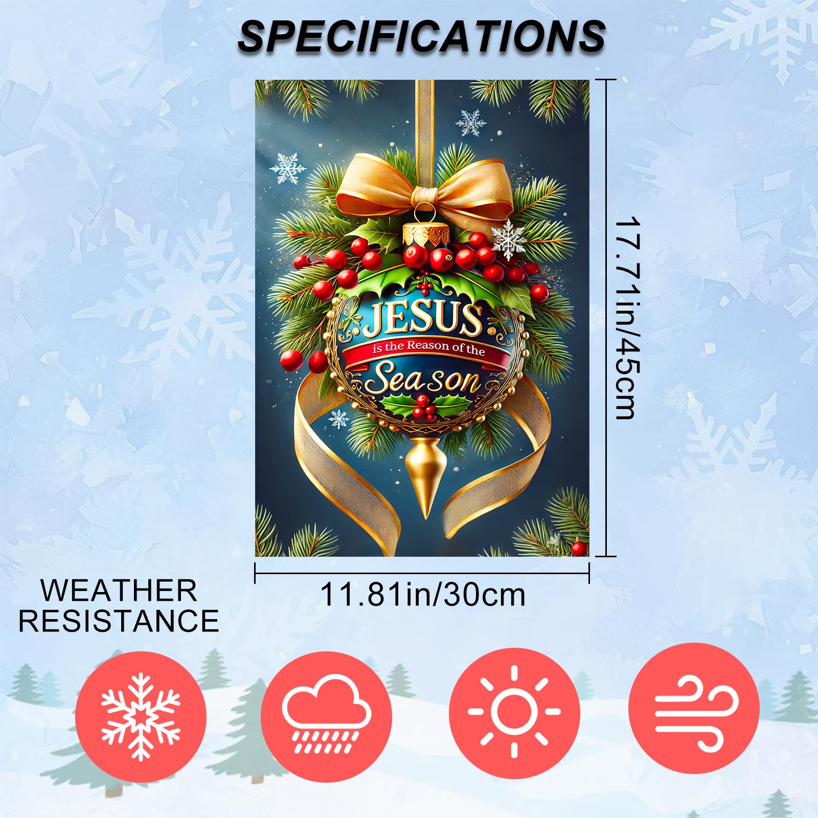 IVN Christmas Garden Flag 12x18 Inch Ornament Yard Banner Double Sided Winter Outdoor Decoration with Holly Berries for Lawn Porch House Seasonal Christmas Garden Flags Outdoor Decor