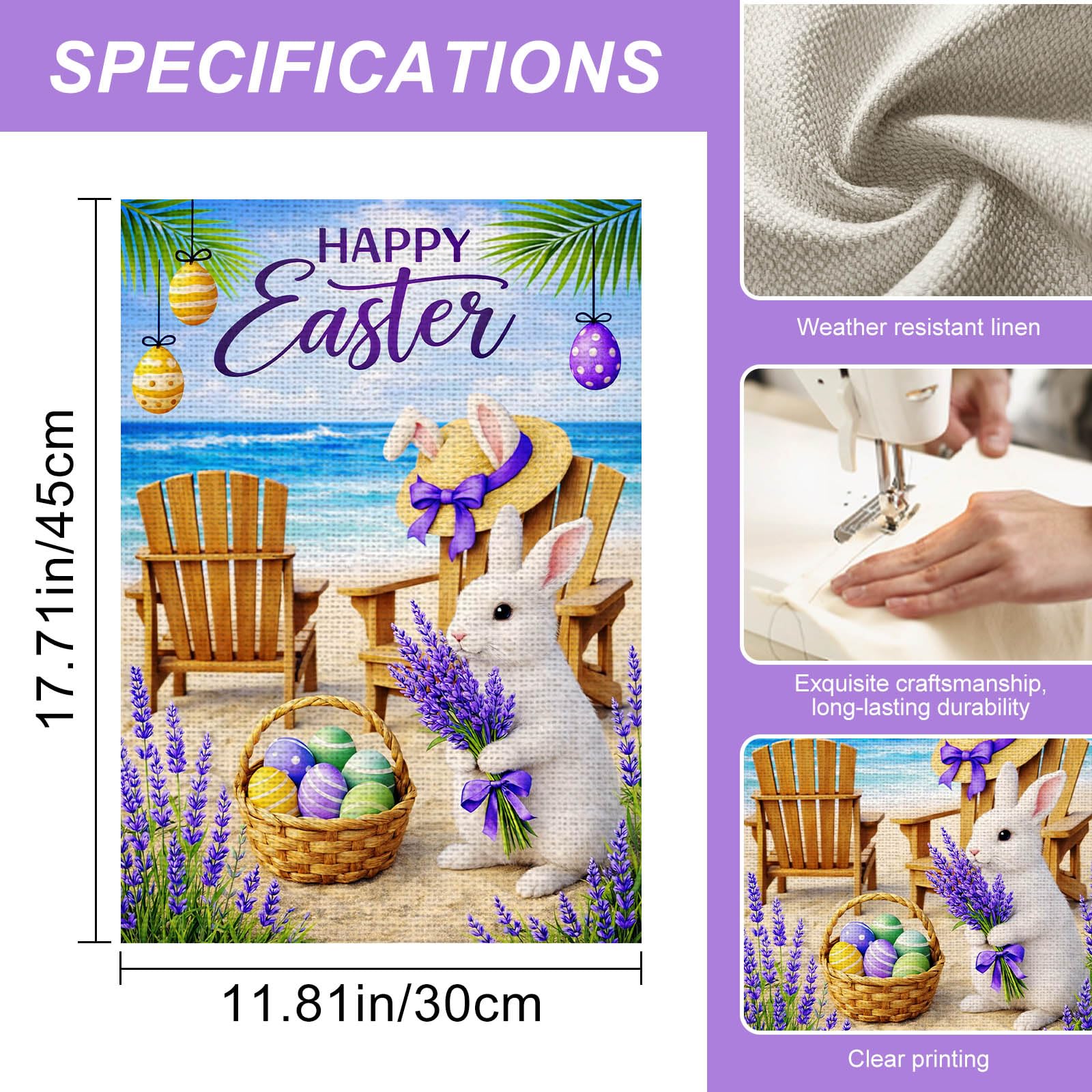 IVN Happy Easter Garden Flag Purple Beach Chair Style 12x18 Inch Double Sided Burlap Yard Decor Bunny With Lavender And Easter Eggs Outdoor Spring Decoration For Porch Lawn Patio