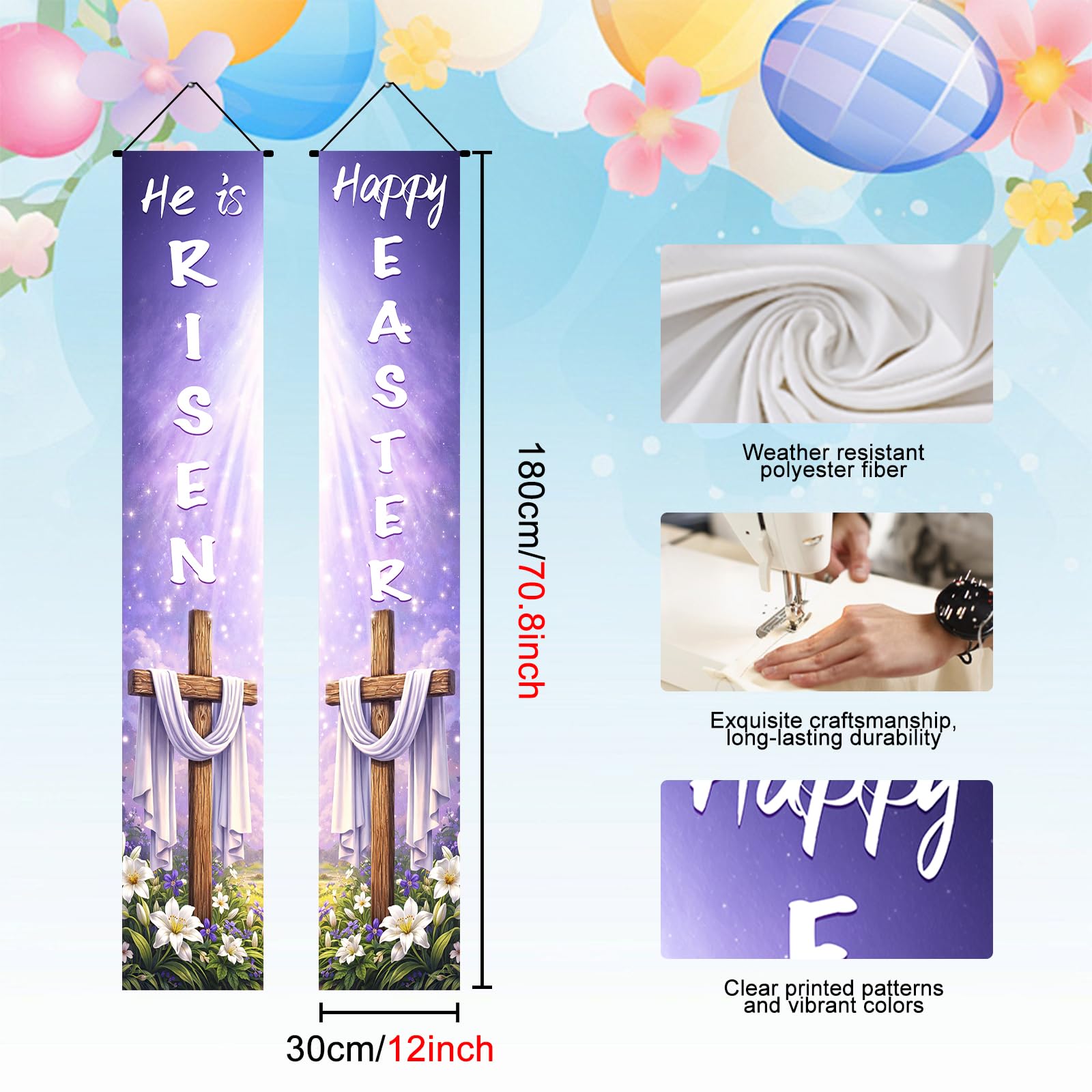 IVN Happy Easter Porch Banner 2PCS 71 x 12 inches Welcome Jesus Porch Banner Sign He is Risen Jesus Hanging Spring Door Banners Wall Front Door Spring Easter Supplies Seasonal Farmhouse Outdoor Decor