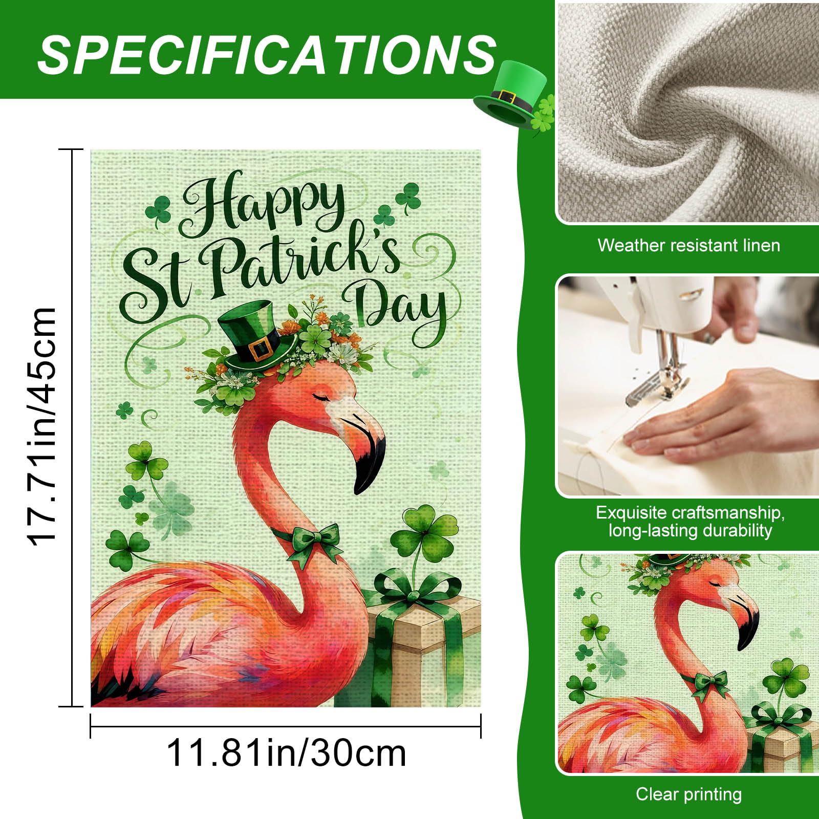 - Perfect 12x18 Size: Sized to create a decorative impact without overwhelming your space, this flag is compatible with most standard garden flag stands. The top sleeve allows for quick installation, making it easy to change for seasonal occasions or everyday outdoor décor—ideal as a st patricks flamingo garden flag, cute flamingo garden flag, and classic saint patrick's day flag.