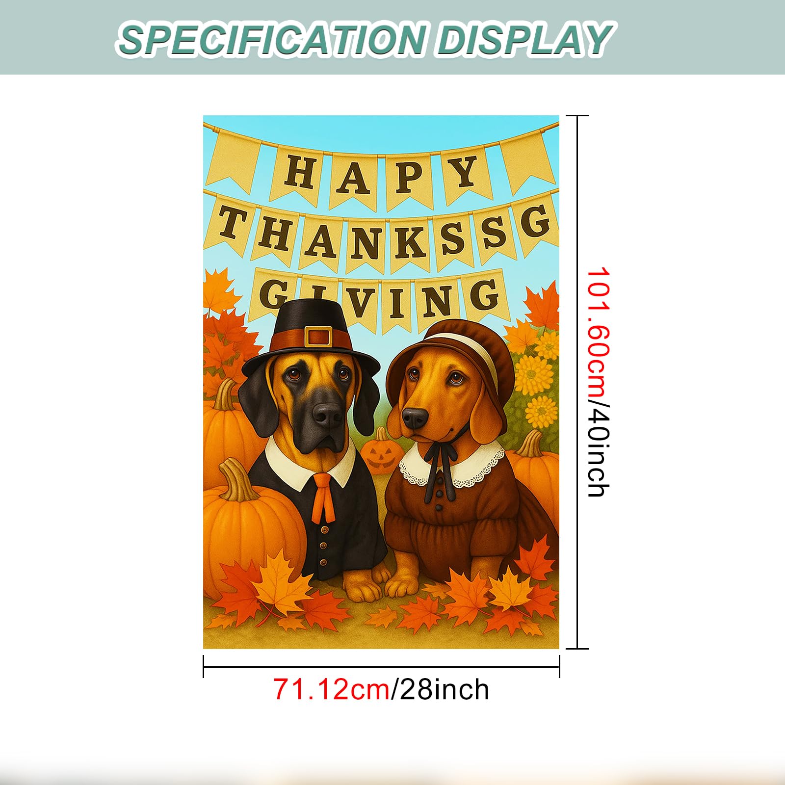 - Special Thanksgiving Dogs Design: Garden Flag presents two adorable dogs in colonial-style costumes surrounded by pumpkins, autumn foliage, and cheerful banner. Soft warm yellow and orange tones bring cozy fall charm, perfect for adding festive joy to outdoor holiday décor.