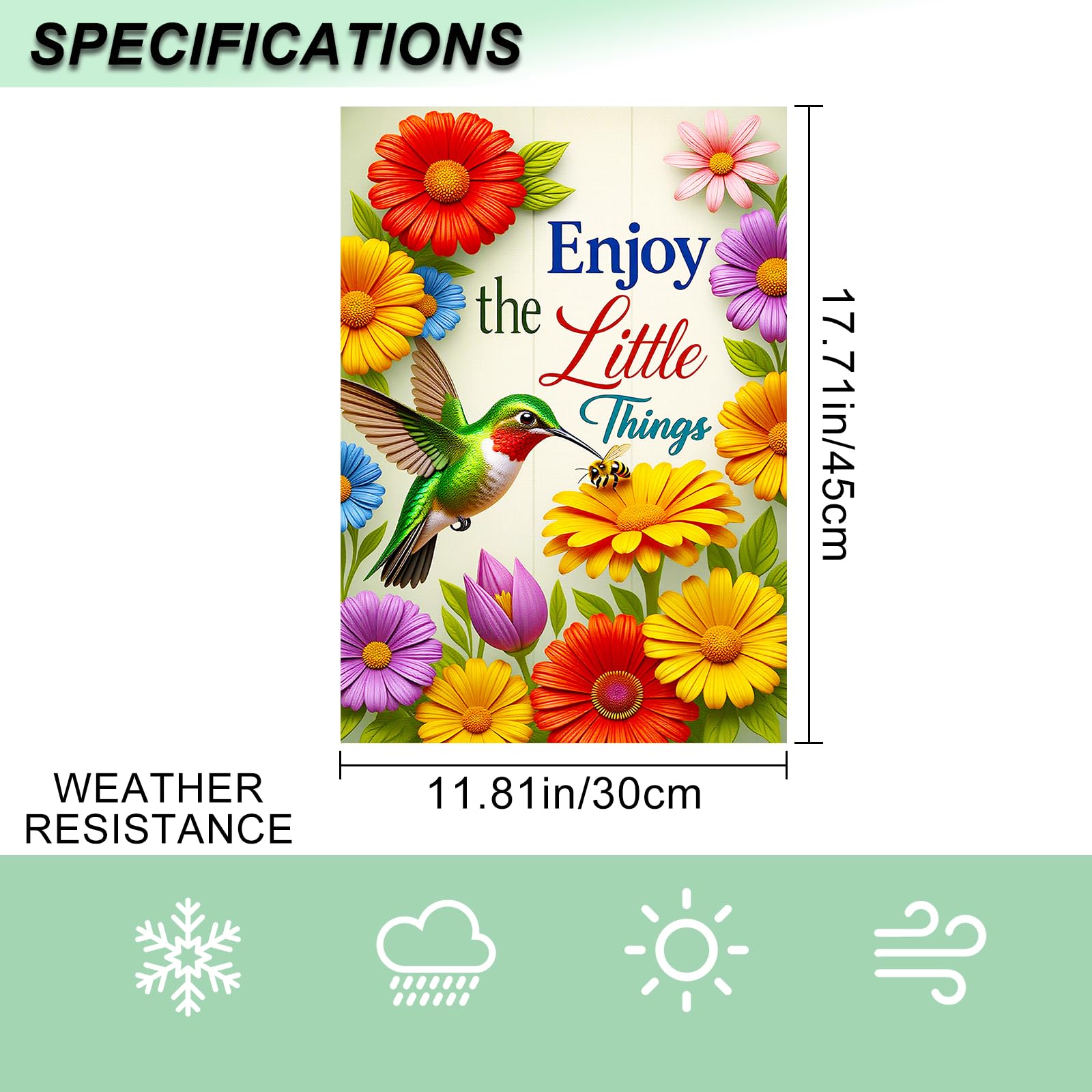 - Double-Sided Display: Same vibrant design printed on both sides, with patterns and text clearly visible and easy to read from different directions. Enhances the beauty of your garden flags and yard art outdoor and garden clearance large décor. Listing is for the Hummingbird flag only. Flag pole or stand not included.