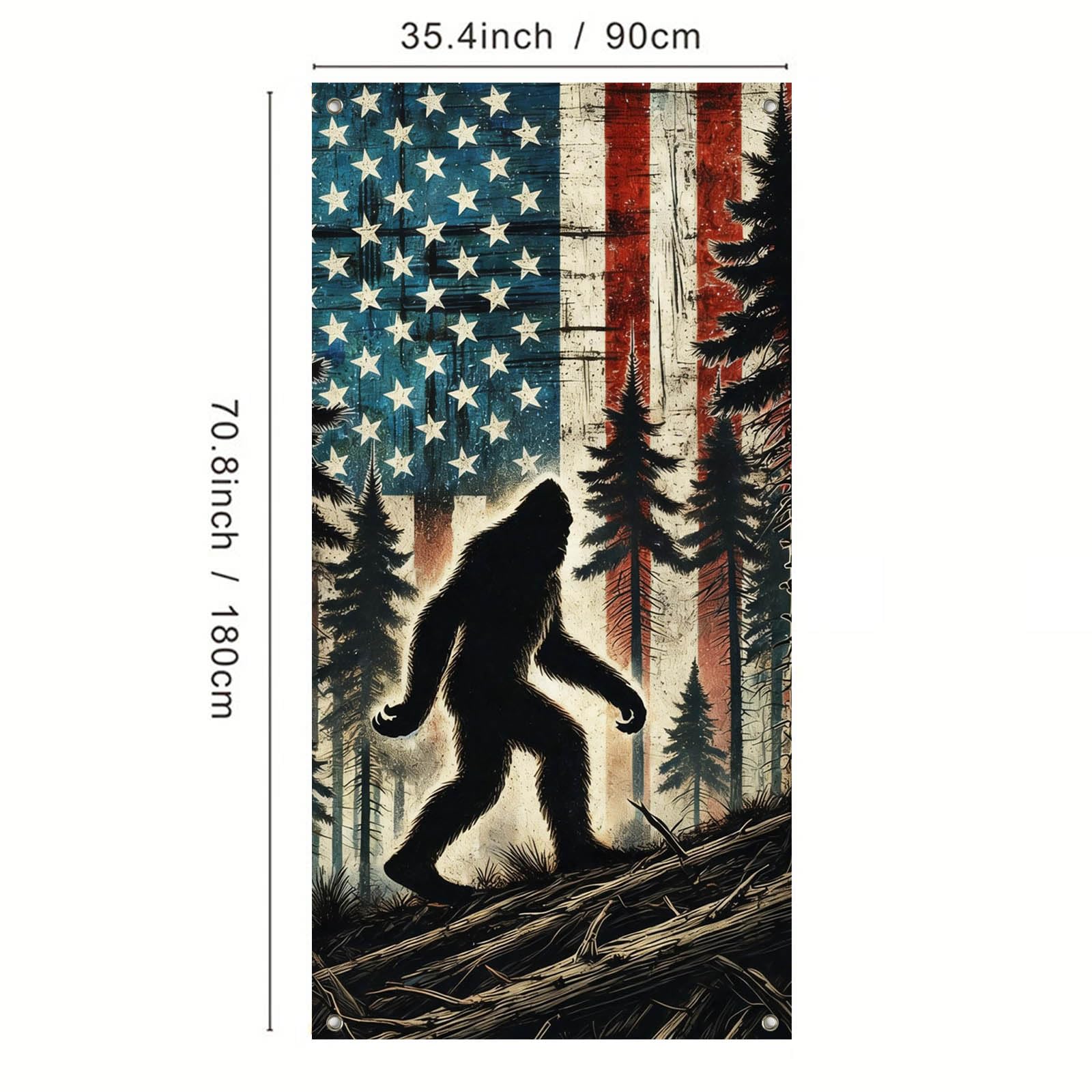 - Festive Holiday Look: _Patriotic Bigfoot Door Cover_ Instantly brighten any space with a festive door cover that creates a warm, welcoming holiday atmosphere. Perfect for front doors, porches, classrooms, offices, and party photo backdrops—an eye-catching Americana cabin decor look guests love to snap and share.