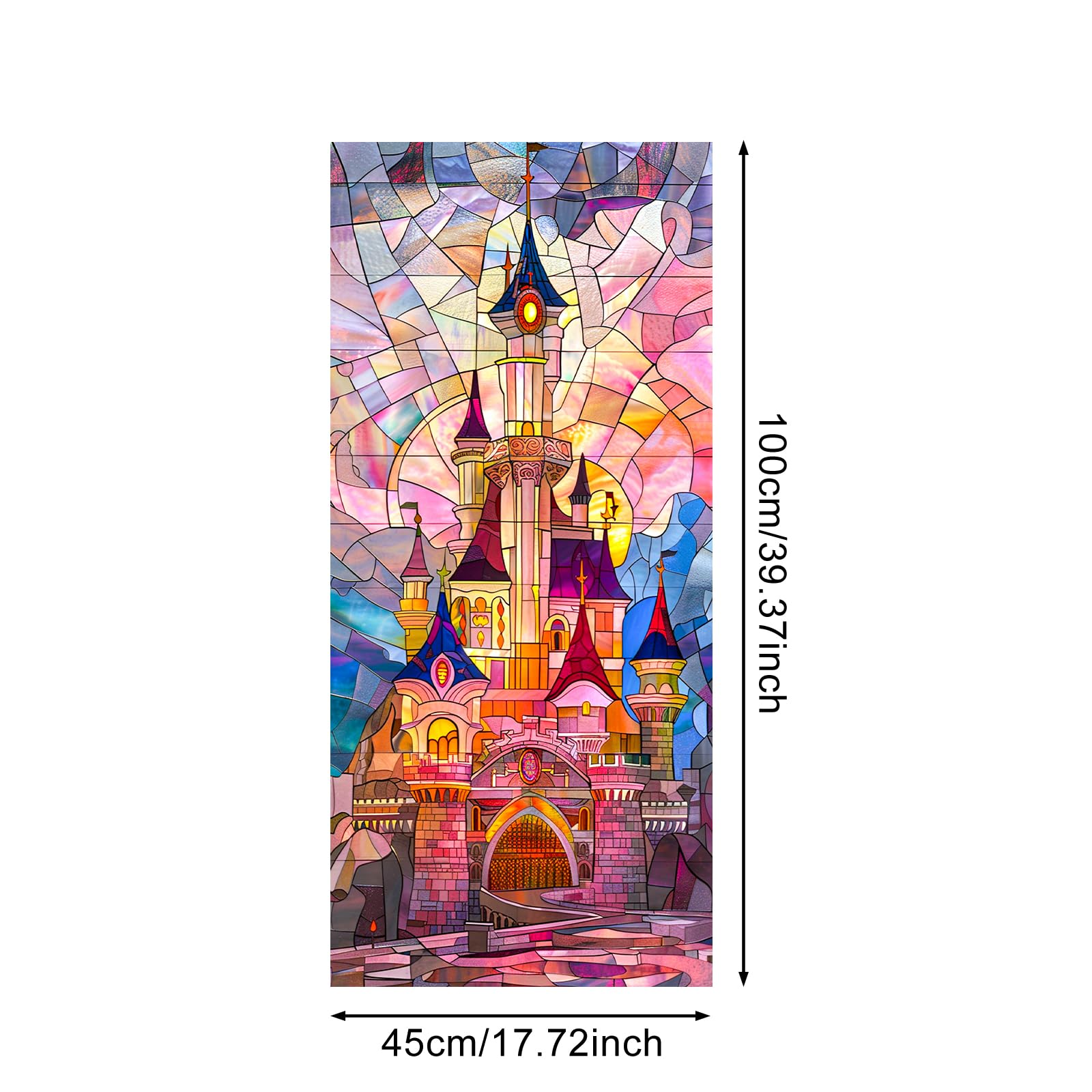 IVN Privacy Window Multicolor Fairytale Castle Silhouette Decorative Window Cling Stained Glass Style Static Cling Glass Sticker for Bathroom Entryway Kitchen Door Panel 17.7 x 39.3 Inch