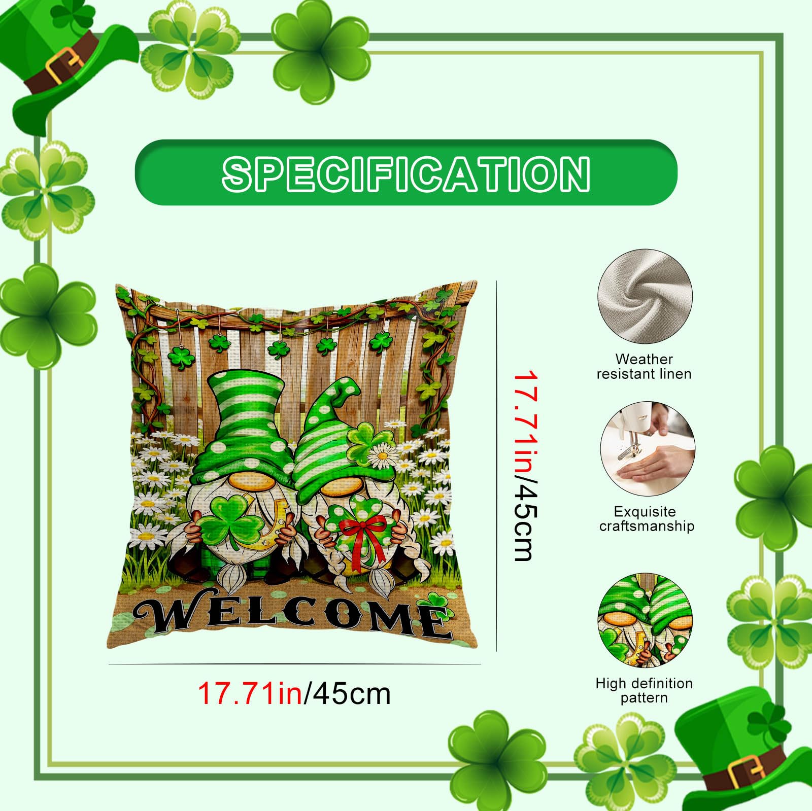 - Natural Wood Look Meets Irish Icons: This cover combines a wood panel background with festive gnomes, perfect for adding organic charm to your st patricks pillow covers 18x18 while supporting rustic or cottage-style st patricks day decorations.
