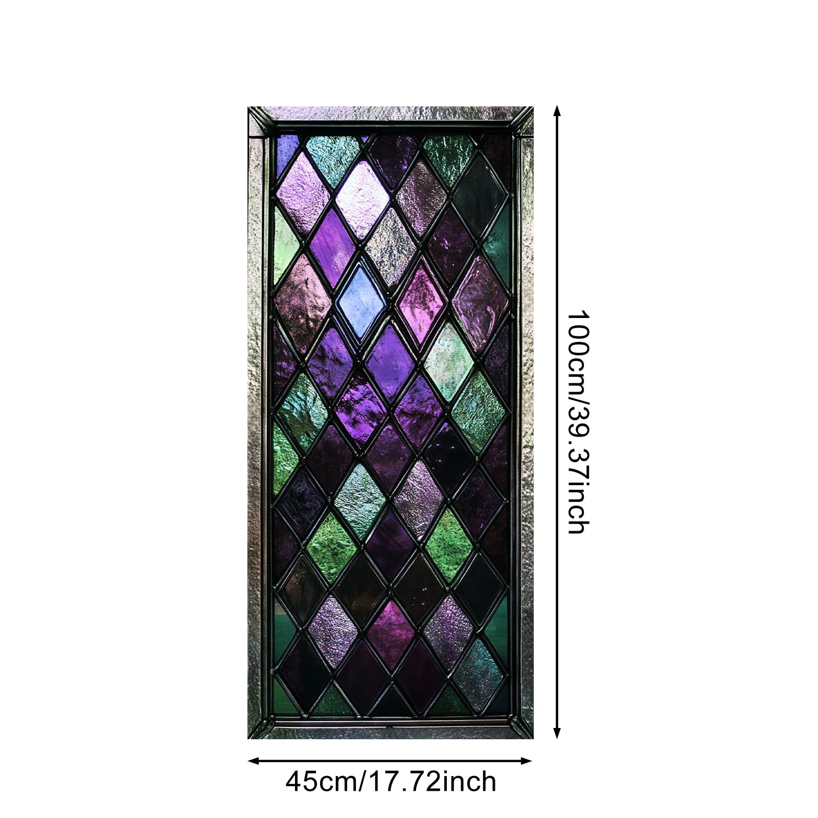 - Classic Diamond Pattern: This stained glass window film features a classic diamond pattern in rich shades of purple, green, and blue. The symmetrical design brings a timeless and elegant aesthetic to any window.