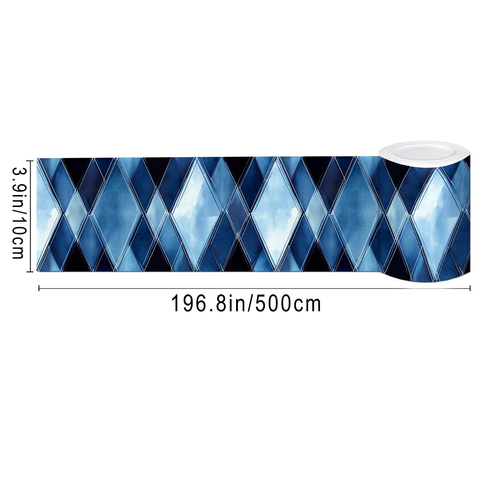 IVN Wallpaper Border Blue Strip Wallpaper Peel and Stick Wall Diamond Geometric Decorative Wall Trim Self Adhesive Border for Walls Mirror Frame Accent Strip for Bedroom Kitchen LivingRoom 4x196 Inch