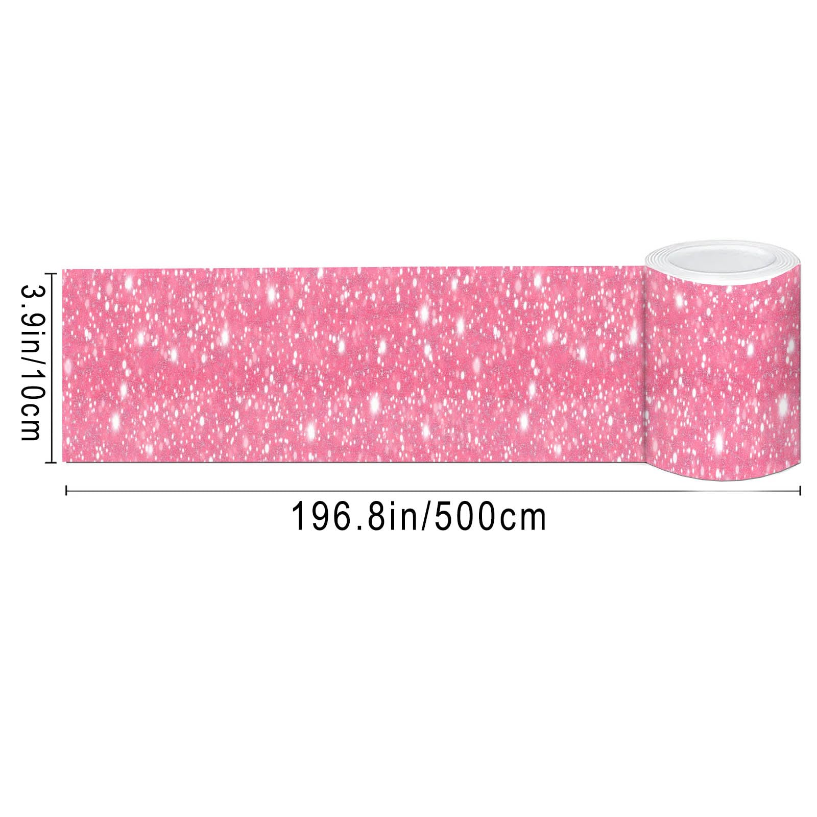 IVN Wallpaper Border Peel and Stick PVC Pink Glitter Stars Design 4x196 Inch for Kids Room Playroom Nursery Wall Accent